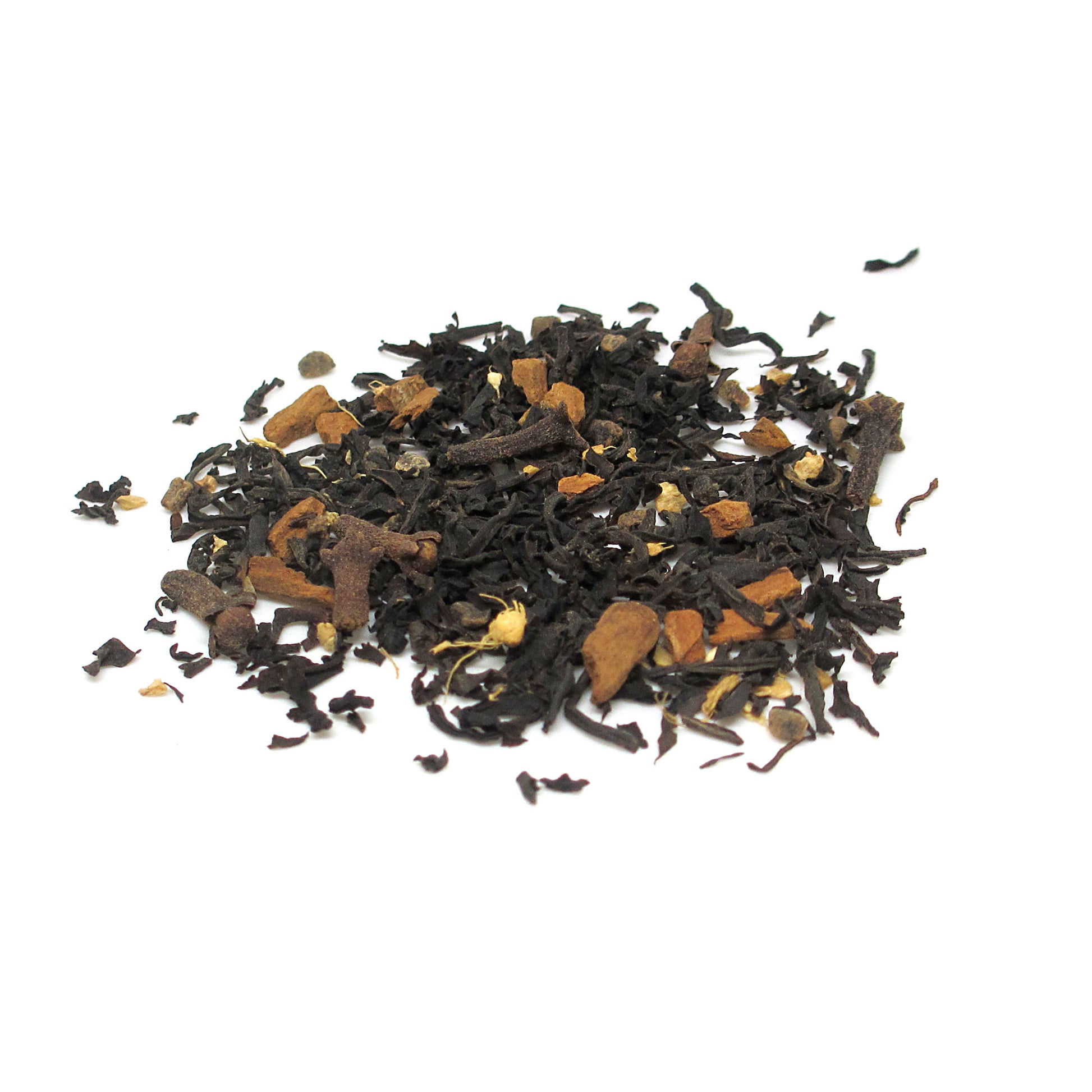 Blended with: Assam Black Tea, Black Tea, Cardamom, Ginger, Cloves, Natural Cinnamon Flavor, Cinnamon, Natural Chestnut Flavor