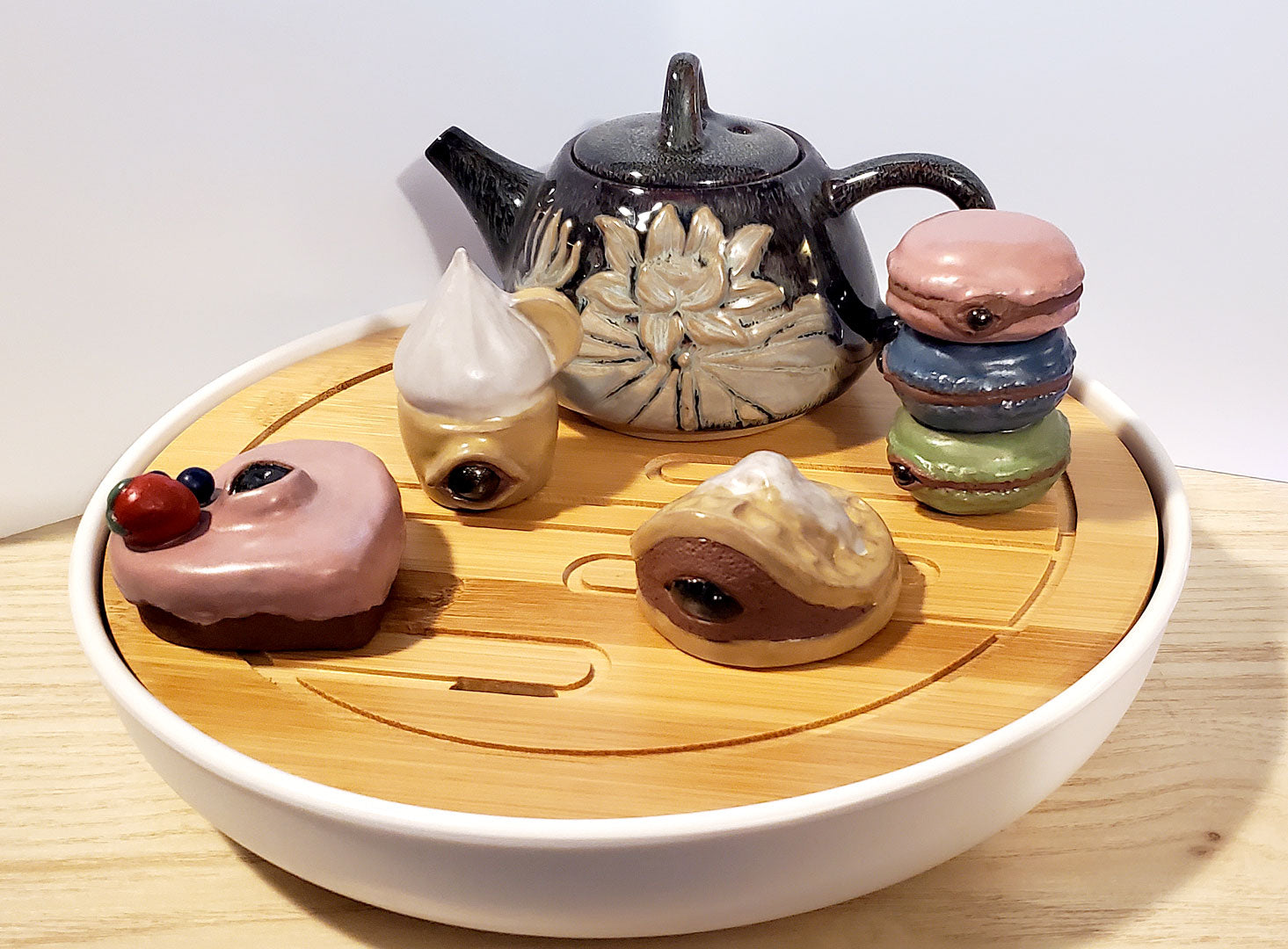 Now they are available for you! These little mimics will sit on your tea tray or wherever you wish to put them and keep an eye on things. Don't worry, they won't try to eat you since they're so small.