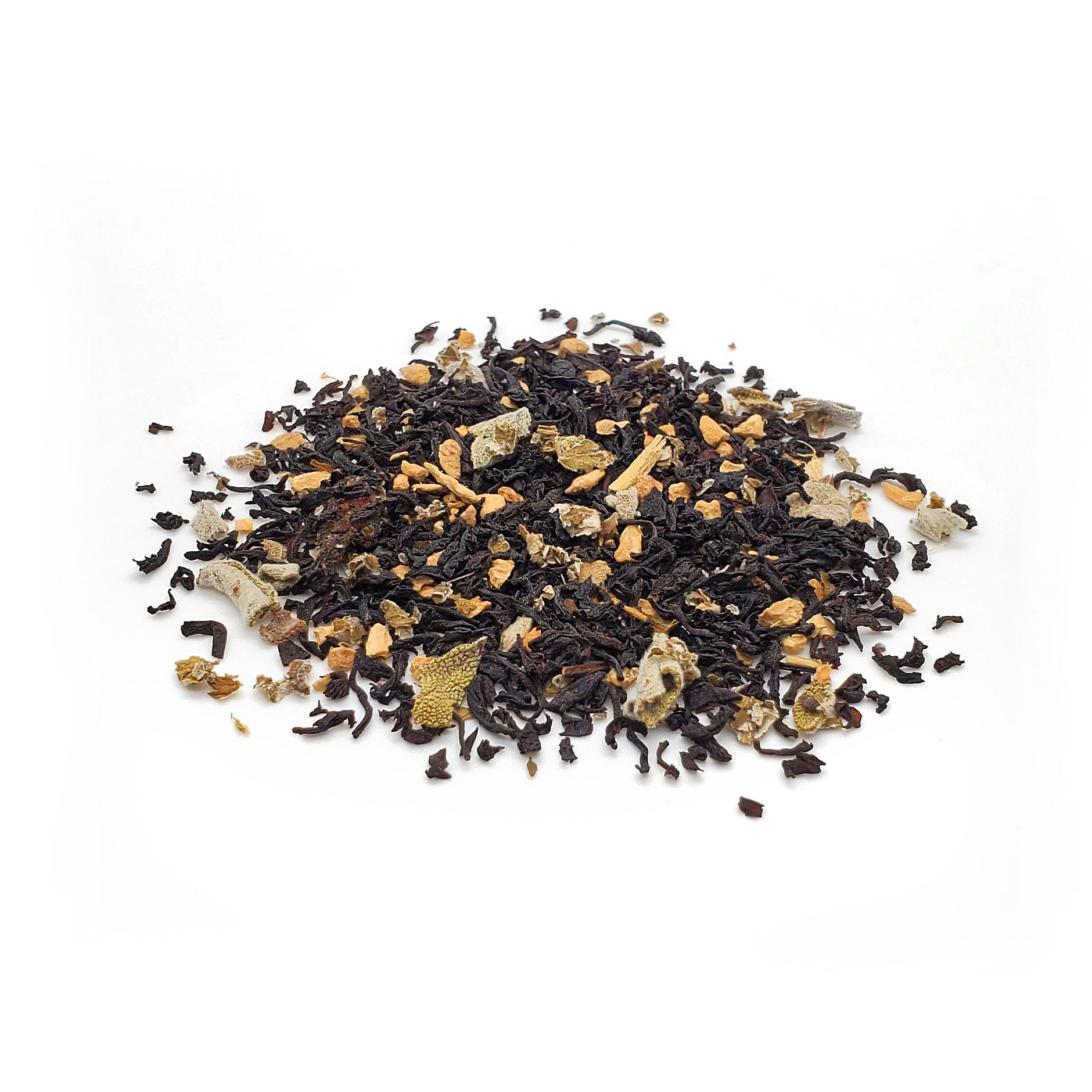 Blended with: black tea, raspberry leaves, sage, ginger, natural cranberry flavor, cranberries